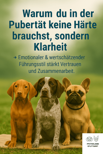 Die Pubertät ist nicht die Zeit für Härte – sie ist die Zeit für Klarheit, Geduld und Präsenz. Dein Hund braucht dich jetzt als ruhige, verlässliche Bezugsperson, die ihn führt – nicht unterwirft. Wer in dieser Phase mit Gefühl und Struktur begleitet, erzieht keinen Untertan, sondern gewinnt einen loyalen Partner fürs Leben.