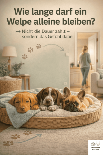 Nur kurz zum Bäcker, ein paar Minuten ins Bad oder mal die Mülltonne rausstellen – und dein Welpe beginnt zu jaulen, zu kratzen oder fiept herzzerreißend. Vielleicht fragst du dich: Übertreibt er? Muss er das nicht lernen? Und ab wann darf er überhaupt allein bleiben? Die ehrliche Antwort: Alleinbleiben ist kein natürlicher Zustand für einen jungen Hund – sondern ein Lernprozess. Und der beginnt nicht mit Trennung, sondern mit Bindung. In diesem Beitrag erfährst du, wann dein Welpe bereit ist, wie du das Alleinbleiben richtig aufbaust – und was du dabei unbedingt vermeiden solltest.