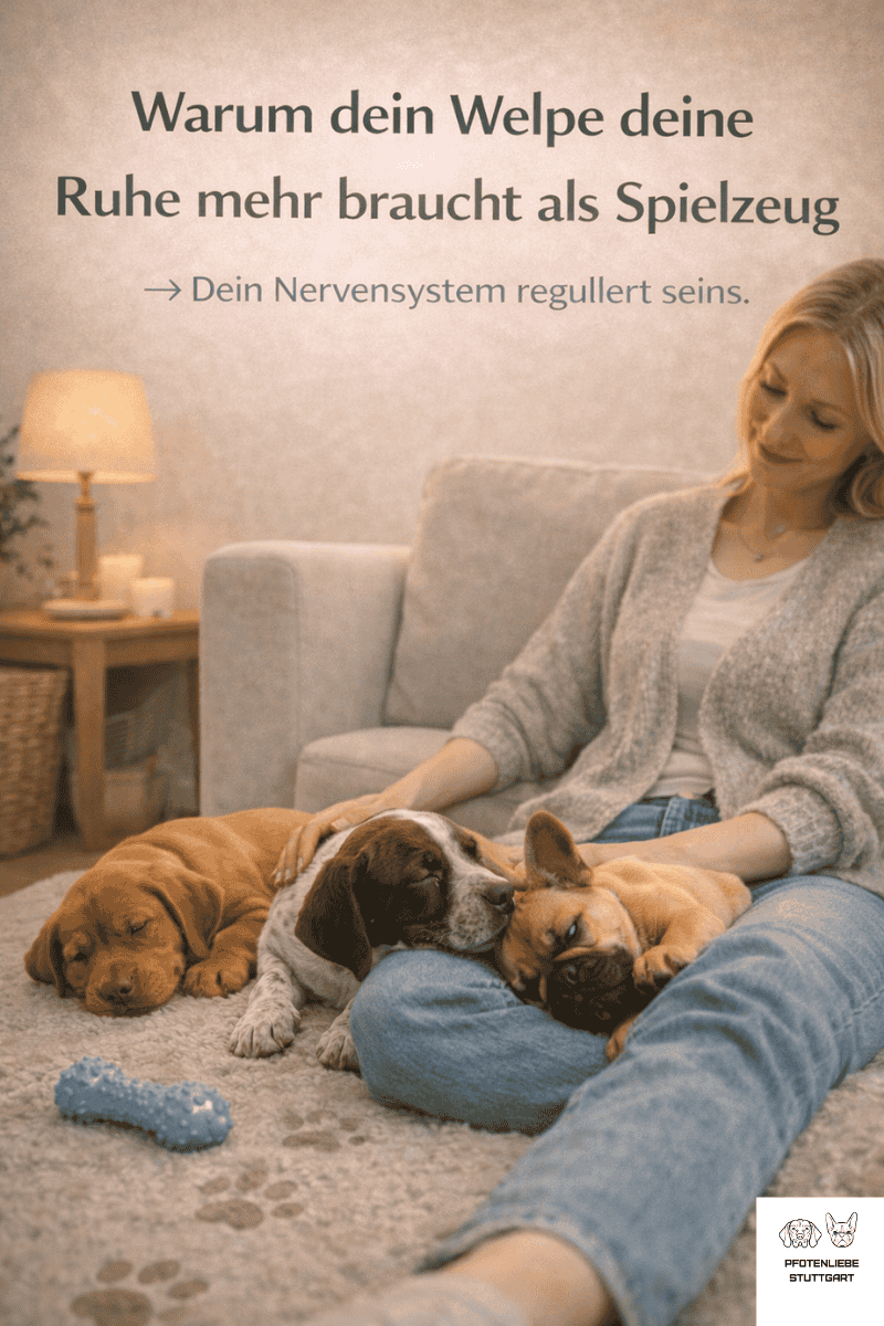✓ Nimm dich zurück: Du musst nicht jeden Moment gestalten. Dein Welpe darf einfach bei dir sein – ganz ohne Aktion.