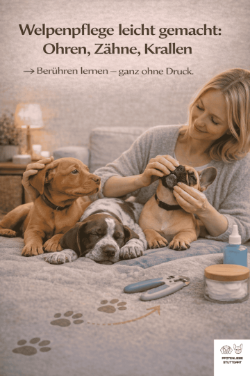 Pflege klingt für viele nach Aufwand oder Zwang – doch für deinen Welpen ist sie vor allem eines: eine neue Erfahrung. Wenn du ihn früh, sanft und mit Feingefühl daran gewöhnst, wird Pflege nicht zur Herausforderung, sondern zur wertvollen Routine. Denn: Ohren kontrollieren, Zähne anschauen, Krallen schneiden – all das ist wichtig für die Gesundheit deines Hundes. Und es kann ganz entspannt ablaufen, wenn du die Grundlagen gleich richtig legst. In diesem Beitrag erfährst du, wie du mit Achtsamkeit und liebevoller Begleitung aus Pflegemomenten echte Vertrauensmomente machst.