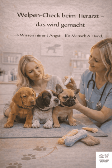 Beim ersten Termin wird dein Welpe einmal komplett durchgecheckt – liebevoll, aber gründlich. Der Tierarzt oder die Tierärztin prüft u. a.: